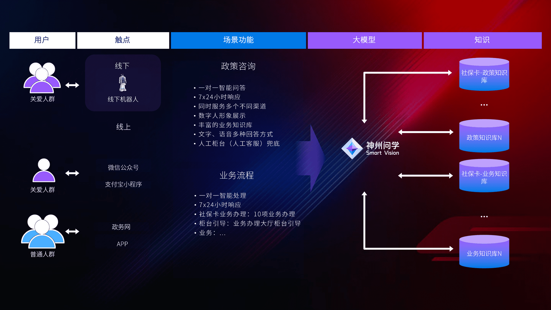 • 线上线下全覆盖:线上提供微信公众号、、、、支付宝小程序、、、政务网、、app多种渠道,,,与线下机器人形成完整服务体系。。。。